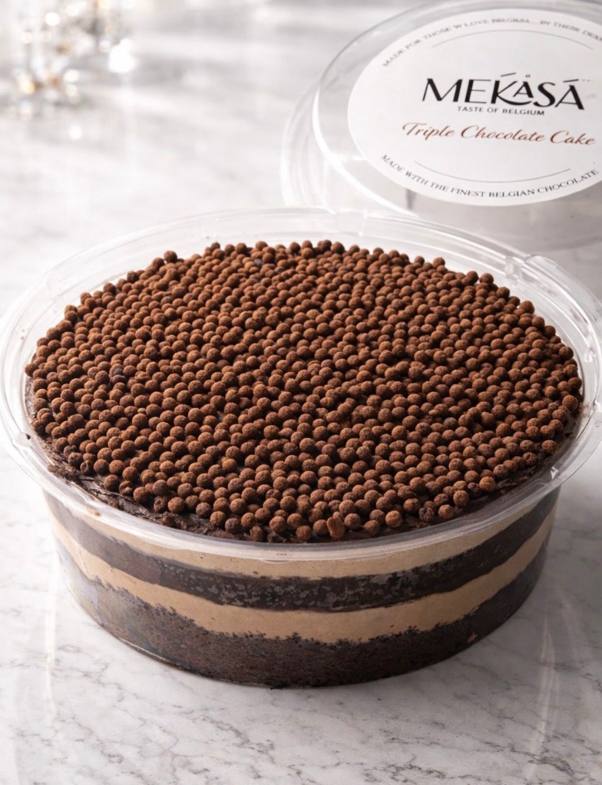 An indulgent creation made with layers of moist chocolate sponge, rich chocolate cream, and finished with a glossy chocolate ganache.